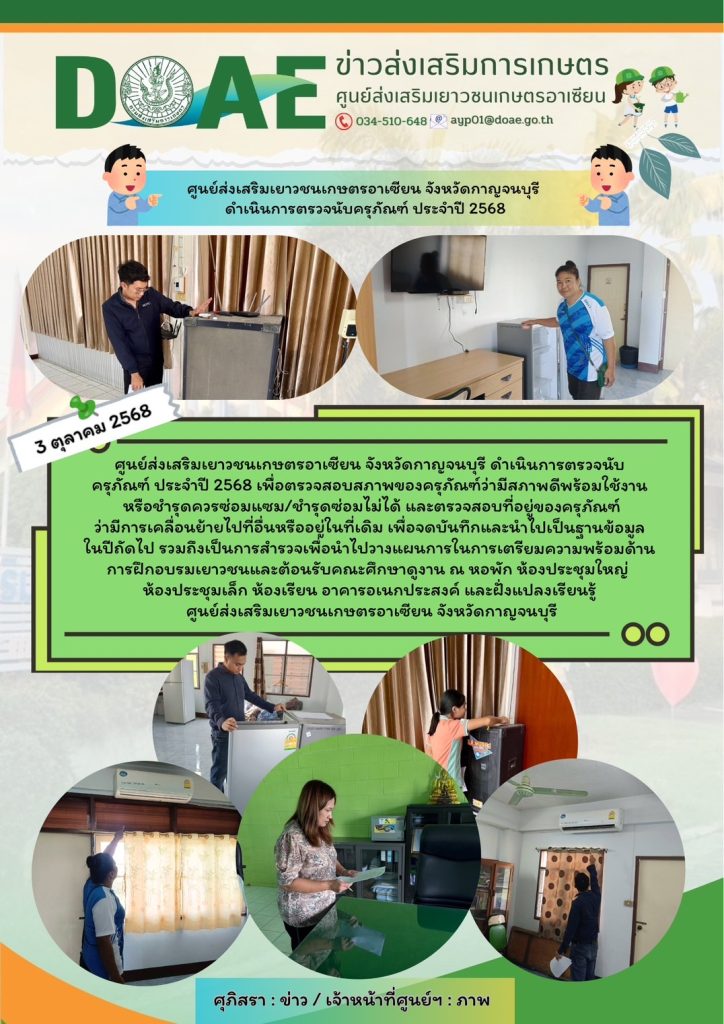 ข่าวประชาสัมพันธ์ ศูนย์ส่งเสริมเยาวชนเกษตรอาเซียน จังหวัดกาญจนบุรี ดำเนินการตรวจนับครุภัณฑ์ ประจำปี 2568 6 ตุลาคม 2025 /